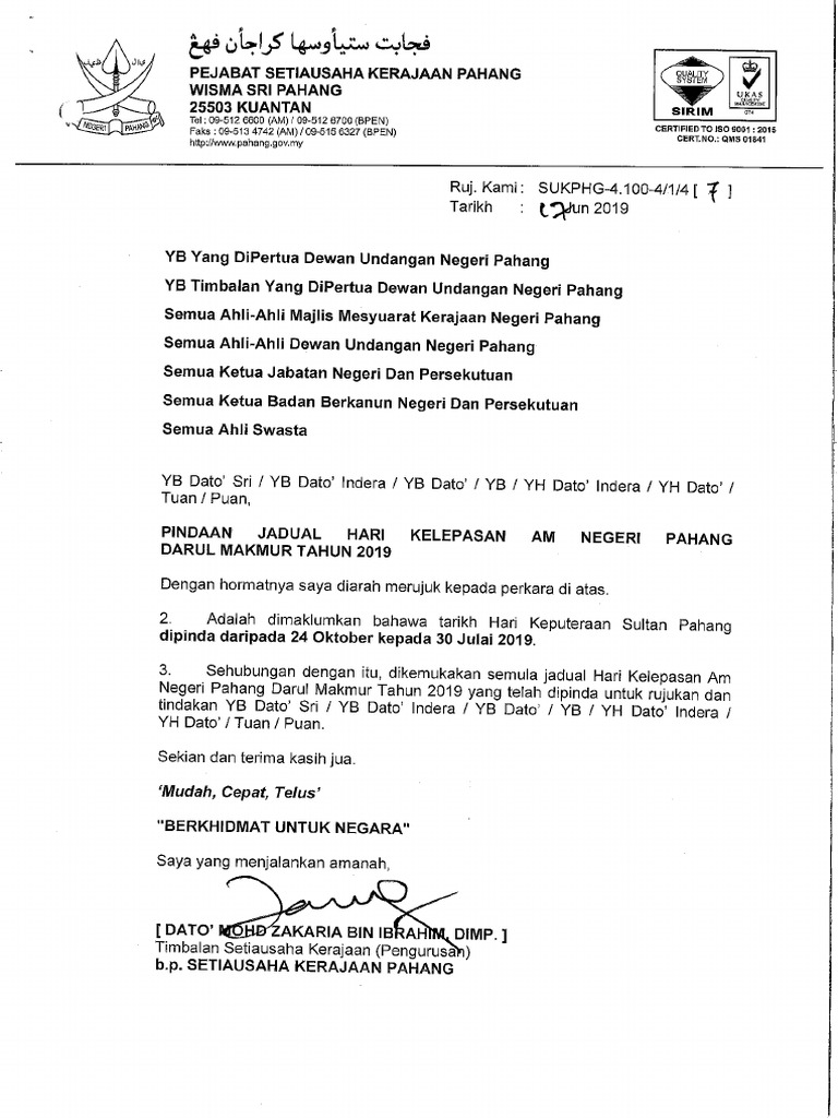 Related : Hari Kelepasan Am Negeri Pahang 2019 - Hari kelepasan am negeri johor 2020 demi rakyat johor facebook..