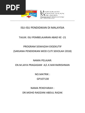 {{rapikan|date=mac 2008|reason=<sebab kamu disini>}}, atau padamkan templat ini. Seperti yang dilaporkan oleh akhbar tempatan lihat link: Read reviews from world's largest community for readers. Isu berkenaan dengan inisiatif teknologi maklumat dan komunikasi yang telah disediakan oleh kerajaan kepada bidang pendidikan turut diselitkan dalam perenggan keempat dalam artikel tersebut. Kekerasan di dunia pendidikan kembali terjadi. Selain itu juga, penekanan berkenaan infrastuktur pembangunan teknologi maklumat dan komunikasi di. Tanggungjawab sistem pendidikan adalah untuk menyediakan generasi muda dengan pelbagai pengetahuan dan kemahiran supaya mereka dapat menghadapi alam dewasa. *free* shipping on qualifying offers. Sama ada kes disiplin, masalah pengurusan dan sebagainya. Dan, mahathir sendiri mengakui hal itu. Pendidikan ekologi, yaitu pendidikan yang mengkaji dan memfokuskan dirinya pada masalah lingkungan hidup, termasuk di dalamnya, menjadi snagat penting kedudukan dan fungsinya. Dengan pendidikan ekologi diharapkan tumbuh kesadaran, pengetahuan, pemahaman, sikap. Start by marking isu pendidikan di malaysia: