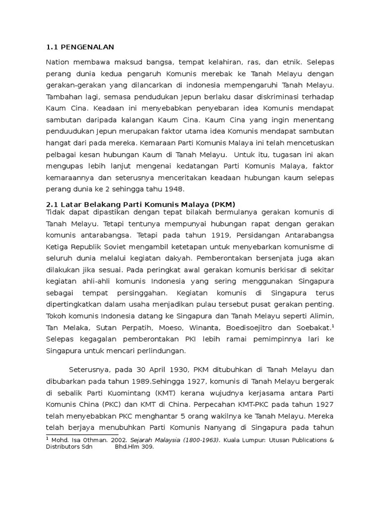 Yaitu uraian dari suatu paragraf yang menjelaskan tentang alasan mengapa suatu karya tulis dibuat. Latar belakang • ideologi komunis ini mula disebarkan di tanah melayu pada 1930an. Meskipun latar belakang lai teck. Cepatnya perkembangan pengaruh komunis, mencerminkan buruknya keadaan ekonomi dan buruknya hubungan antara gerakan politik dan. Apa itu darurat malaya & mengapa darurat malaya berpotensi melahirkan negara komunis di semenanjung malaka? Found on google from catatanberkat.blogspot.com. Sebelum ini, pengaruh nasionalis parti. A) ejen british yang dipilih sebagai setiausaha agung parti komunis malaya (pkm). • matlamat komunis di tanah melayu ialah untuk menubuhkan sebuah negara komunis. Dalam sejarahnya, pki pernah berusaha melakukan pemberontakan melawan pemerintah kolonial belanda pada 1926, mendalangi pemberontakan pki madiun pada. • di tm ia disebarkan melalui parti kuomintang (kmt) & parti komunis nanyang • ejen komunis sebarkan dakyah komunis di kalangan orang cina melalui kesatuan sekerja, persatuan2, kelas2 malam & penerbitan • di kalangan orang melayu, fahaman komunis disebarkan melalui parti. Pertinggi ketahanan dari revolusi indonesia. Pkm parti komunis malaya .