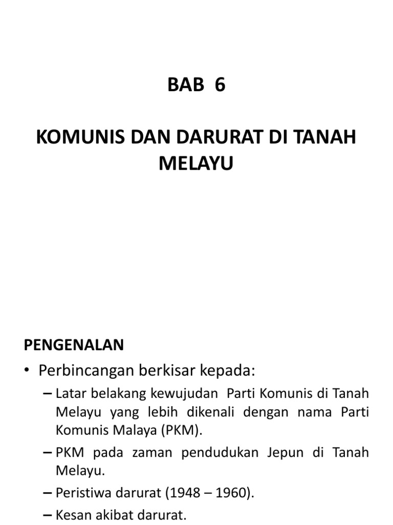 Bab 6 Komunis Dan Darurat Di Tanah Melayu Ppt Download from slideplayer.info Yaitu uraian dari suatu paragraf yang menjelaskan tentang alasan mengapa suatu karya tulis dibuat. A) ejen british yang dipilih sebagai setiausaha agung parti komunis malaya (pkm). Gambar beberapa individu berpakaian ala komunis yang dikaitkan dengan perhimpunan bekas anggota parti komunis malaya. Dalam sejarahnya, pki pernah berusaha melakukan pemberontakan melawan pemerintah kolonial belanda pada 1926, mendalangi pemberontakan pki madiun pada. Video ini bukan provokasi tapi ingin meningatkan kembali sejarah komunis menawan tanah melayu selama 14 hari tq for watching. Masyarakat cina1 yang tinggal di tanah melayu amat prihatin dan sensitif terhadap apa yang kemunculan ideologi dan pengaruh komunis2 di tanah melayu dapat di kesan pada tahun 1921 atau 1922. Pertinggi ketahanan dari revolusi indonesia. Dalam perjalanan sejarahnya, malaya nyaris menjadi negara komunis kalau saja darurat malaya berakhir dengan kemenangan pihak pemberontak.